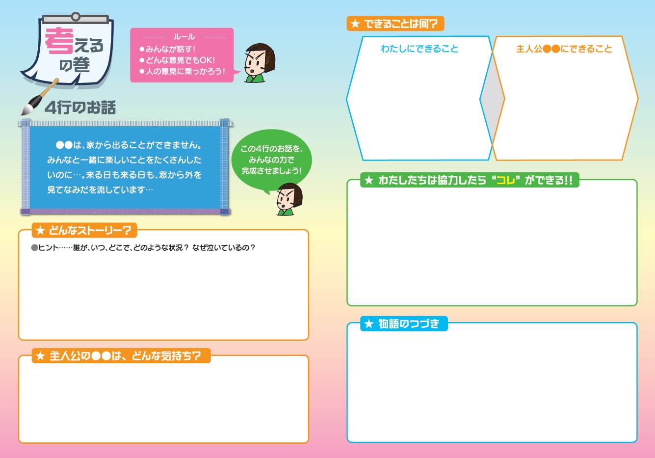 ・答えを全部言うのではなく、ヒントを言ってくださったおかげで話し合いがスムーズにできました。